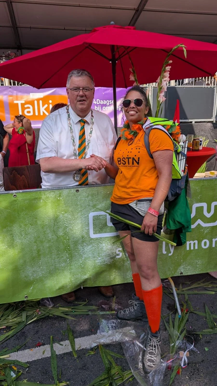 Rosanne Keller heeft afgelopen week de Nijmeegse Vierdaagse samen met haar blindengeleidenhond. Daarbij haalde ze 471 euro op voor de BSTN.